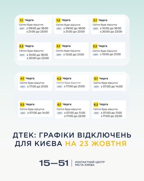 ДТЕК: ГРАФІКИ ВІДКЛЮЧЕНЬ ДЛЯ КИЄВА НА 23 ЖОВТНЯ