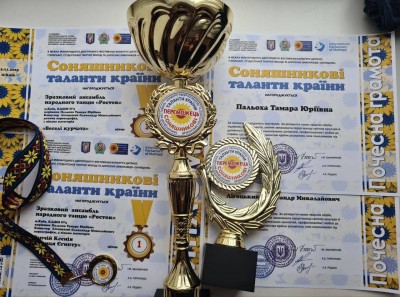 «СОНЯШНИКОВІ ТАЛАНТИ КРАЇНИ»: Зразковий ансамбль народного танцю «Росток» виборовши диплом І місця за танець «Веселі курчата». Солістка ансамблю Топчій Ксенія також отримала диплом І місця за танець «Цариця Єгипту».