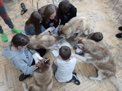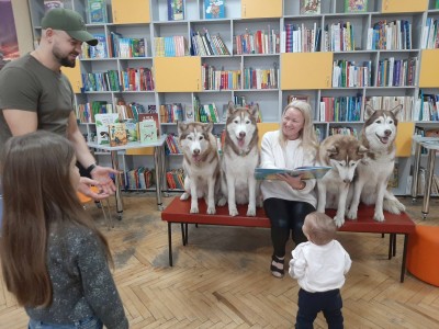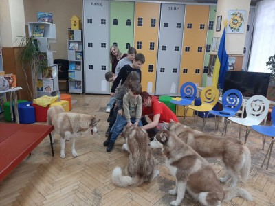 Там приймали особливих гостей - чарівну пані Лору Lora Stanika та її неймовірну команду хаскі: Льолю, Бубу, Фіону та Бандита.