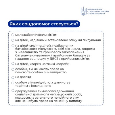 Зокрема, це стосується отримувачів з числа осіб, які не мають права на пенсію, осіб з інвалідністю та дітей з інвалідністю.