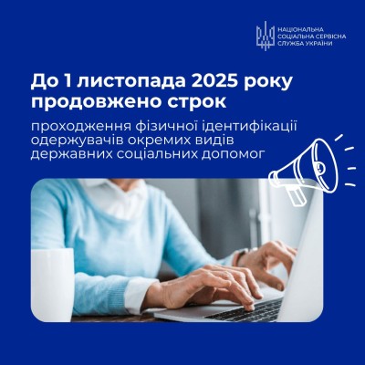 Строк проходження фізичної ідентифікації одержувачів окремих видів державних соціальних допомог продовжено до 1 листопада 2025 року.