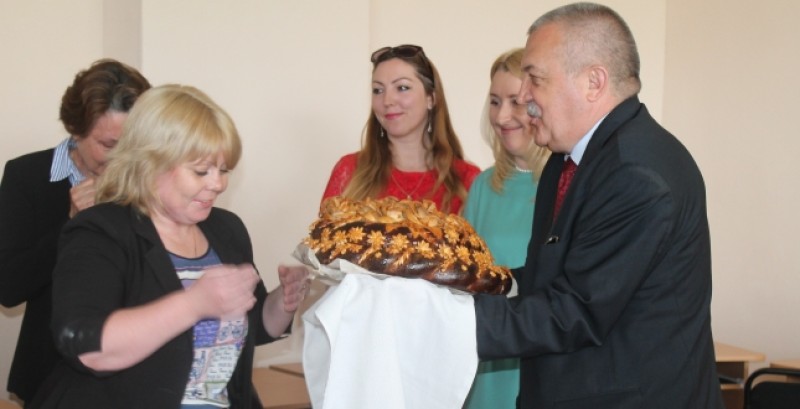 Директор НВК № 293 Лариса Костіна та Красімір Мінчєв урочисто перерізали стрічку, після чого почесні гості ознайомилися з роботою Центру вивчення іноземних мов.