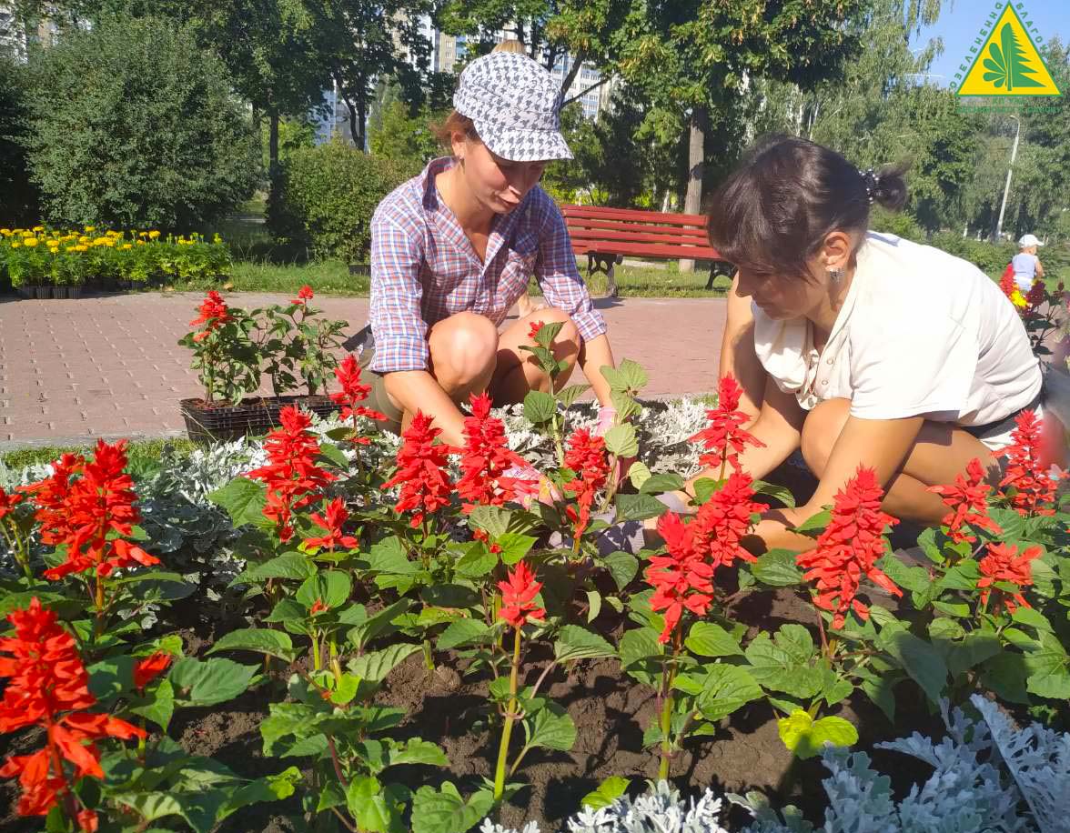 Озеленювачі не припиняють догляд за зеленими насадженнями на балансових територіях підприємства. Так, продовжується полив зелених насаджень, здійснюється формувальна обрізка кущів та обробка дерев мінеральними добривами, висадка та облаштування квітників, фарбування лав у парках та скверах, прибирання випадкового сміття.