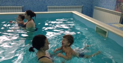 Ольга Антоненко прийшла до басейну зі своїм дворічним сином Сашком. Малюк плаває з народження і сьогодні почувався у басейні доволі звично.