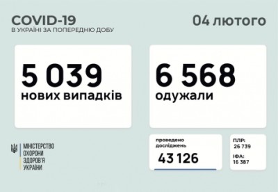 5 039 нових випадків коронавірусної хвороби COVID-19 зафіксовано в Україні станом на 11 лютого 2021 року. Зокрема, захворіли 277 дітей та 281 медпрацівник, про це повідомив на своїй сторінці у соціальній мережі facebook Максим Степанов – https://www.facebook.com/maksym.stepanov.official/posts/872922796584050