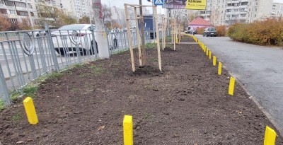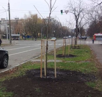 - 13 дерев клена сріблястого — по вул. Радунській, де також встановлено огороджувальні стовпчики та відновлено газон;