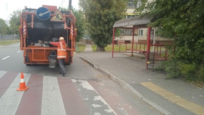- триває нанесення горизонтальної дорожньої розмітки холодним пластиком.