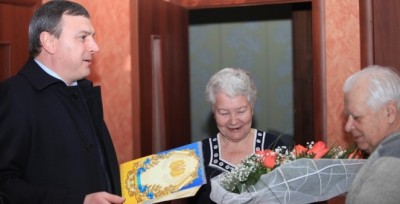 Сьогодні голова Деснянської райдержадміністрації Станіслав Прокопенко привітав Івана Семеновича та Софію Петрівну Чернявських з 50-річним ювілеєм спільного життя.