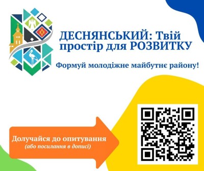 Запрошуємо до участі молодь віком від 14 до 35 років, яка живе, навчається або часто перебуває в Деснянському районі. Кожна відповідь — це реальний внесок у створення умов, у яких молодь хоче залишатися, розвиватися та діяти.