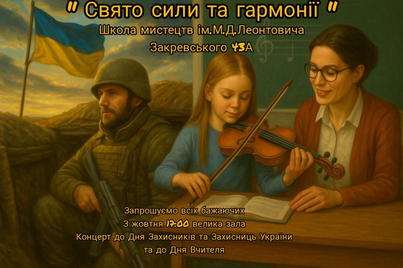 Школа мистецтв ім. М.Д. Леонтовича, Київ запрошує всіх на урочистий концерт, присвячений Дню Захисників та Захисниць України та Дню Вчителя!