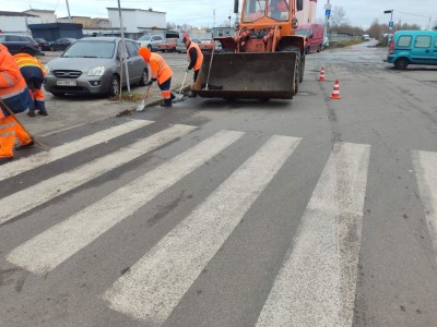 * Продовжуються роботи з нанесення горизонтальної дорожньої розмітки на вулично-дорожній мережі району.