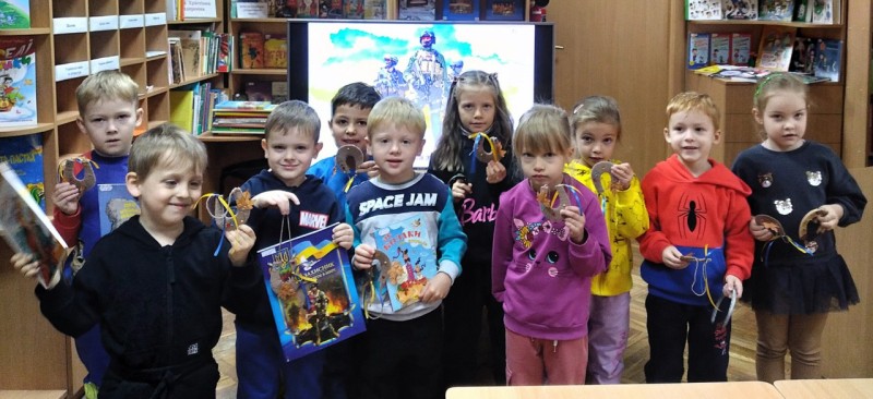 Книжкова добірка «Славні козаки – відважні захисники», голосні читання пригодницьких оповідок Еліни Заржицької «Легенди про козаків», перегляд анімаційних фільмів про спритних героїв-козаків, майстерка «Козацька підкова - на щастя» - діти зацікавлено поринули у славетну історію нашого народу та створили декоративну підкову - стародавній потужний оберіг, що символізує захист від зла та віру в перемогу і мир.