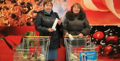 Для порівняння закупівлю такого ж асортименту продуктів та такої ж кількості поруч робила мешканка Деснянського району Олена Михайлівна Лаптєва. Жінки поклали у свої кошики продовольчі товари повсякденного вжитку – молоко, кефір, сметану, сир, консервовані кукурудзяні палички, ковбасу, печиво, макаронні вироби та інше.