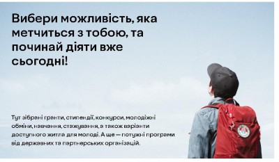Гранти, конкурси, програми обміну, навчання, житло, підтримка молодих бізнесменів — усе на одній платформі