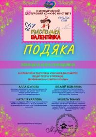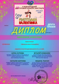 Щиро вітаємо вихованку зразкової «Художньої майстерні» Будинку культури з почесною ІІ премією у міжнародному конкурсі мистецтв «Мистецька валентинка»!