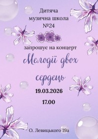 Дитяча музична школа 24 м.Київ щиро запрошує всіх поціновувачів музики на теплий та натхненний концерт «Мелодії двох сердець».