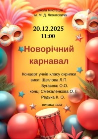 20 грудня 2025 року у великій залі школи відбудеться яскраве музичне дійство – концерт «Новорічний карнавал».